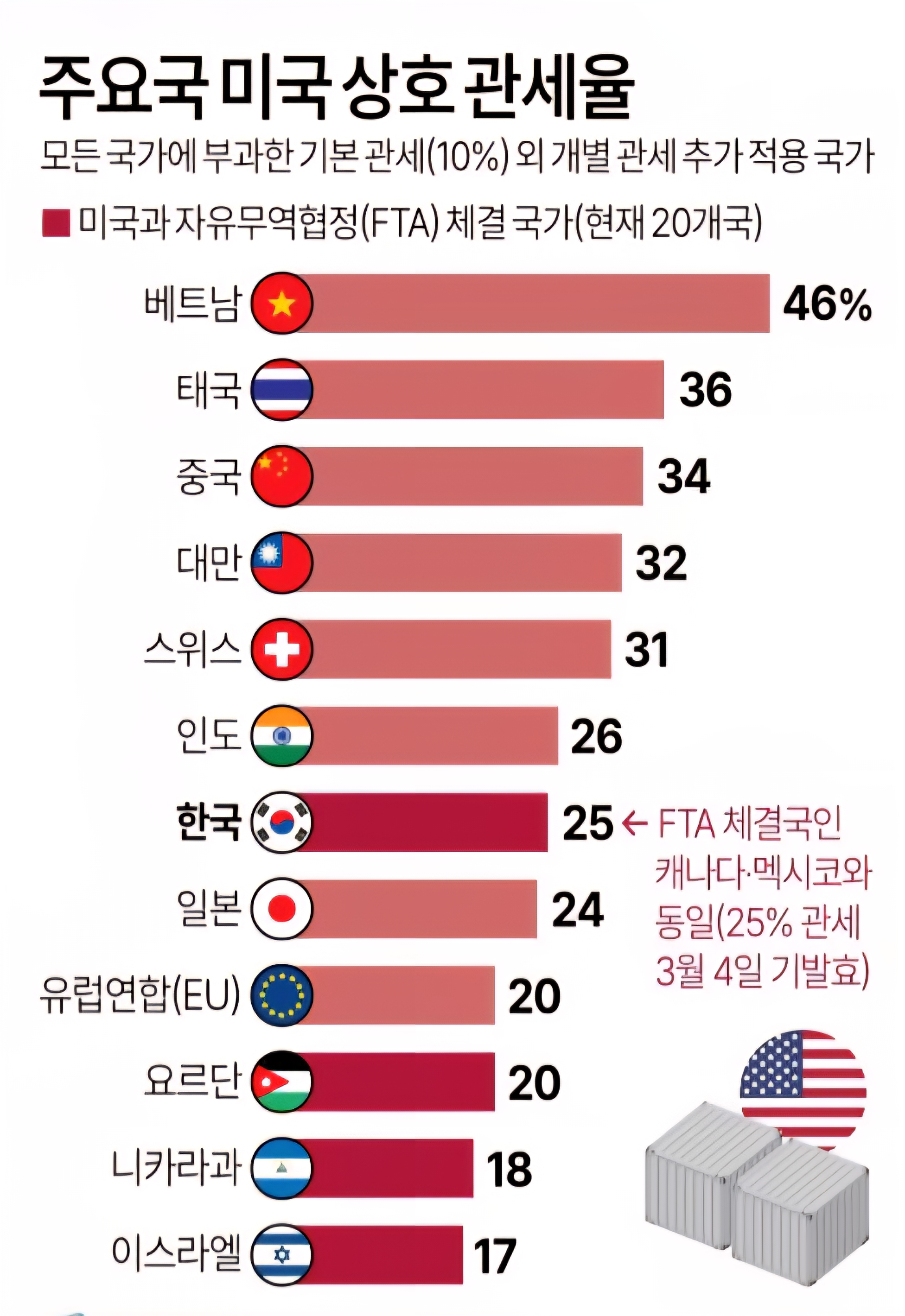 총 3,700억 달러 규모 수입품에 최대 25% 관세
